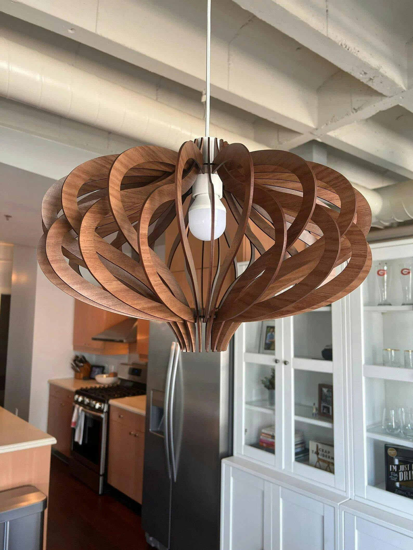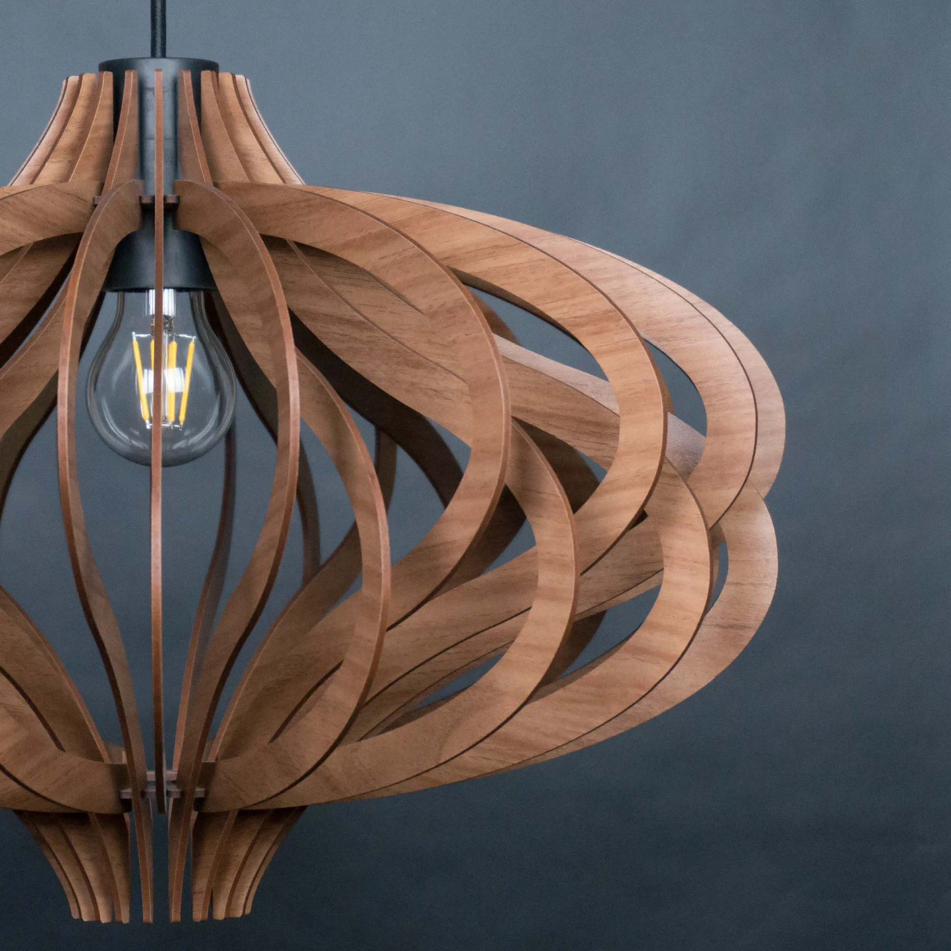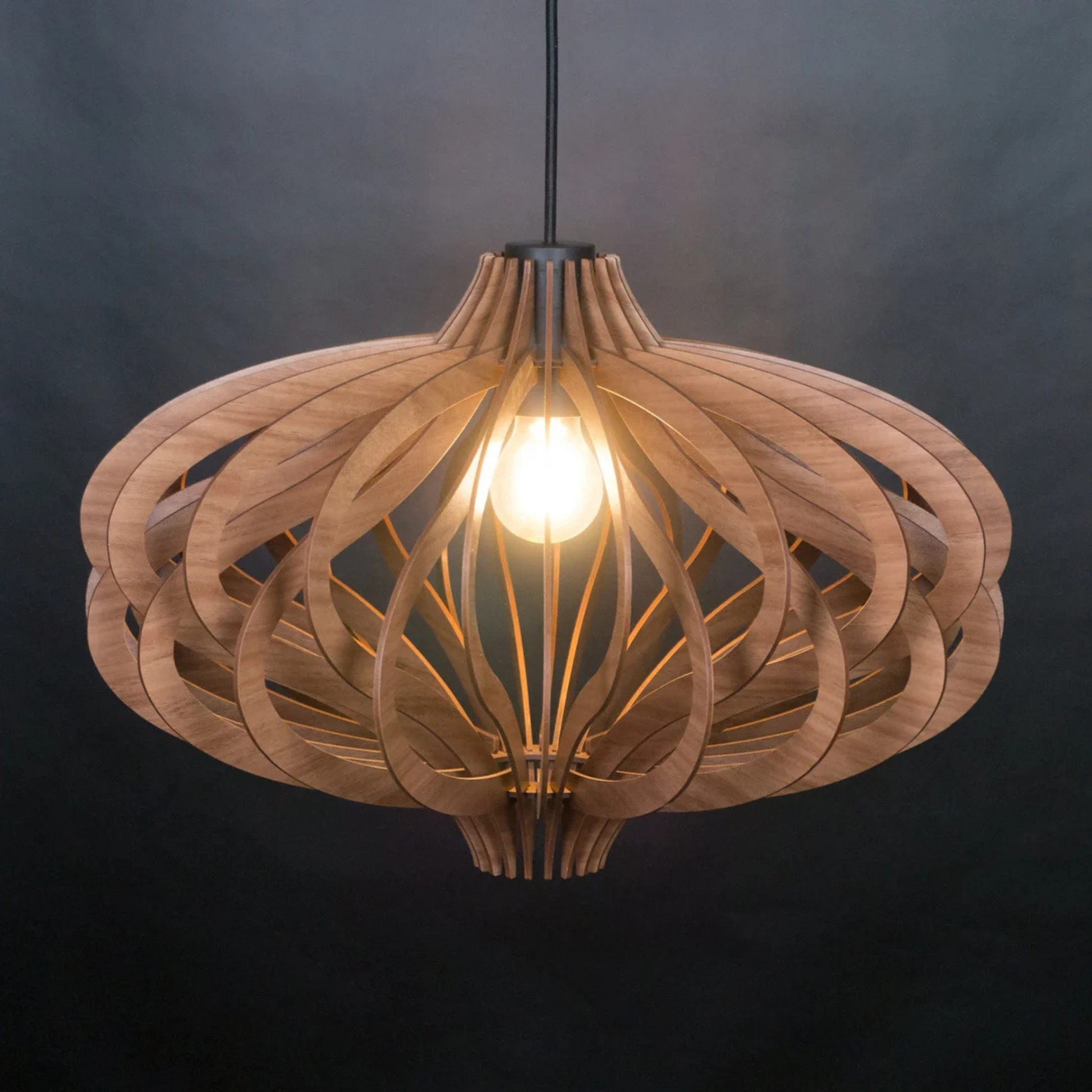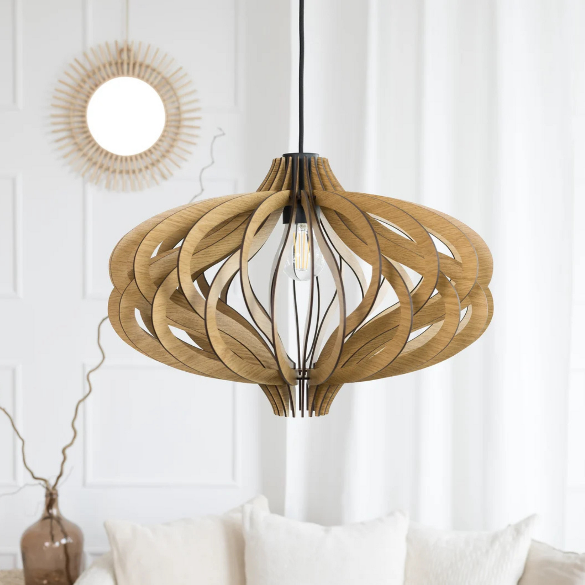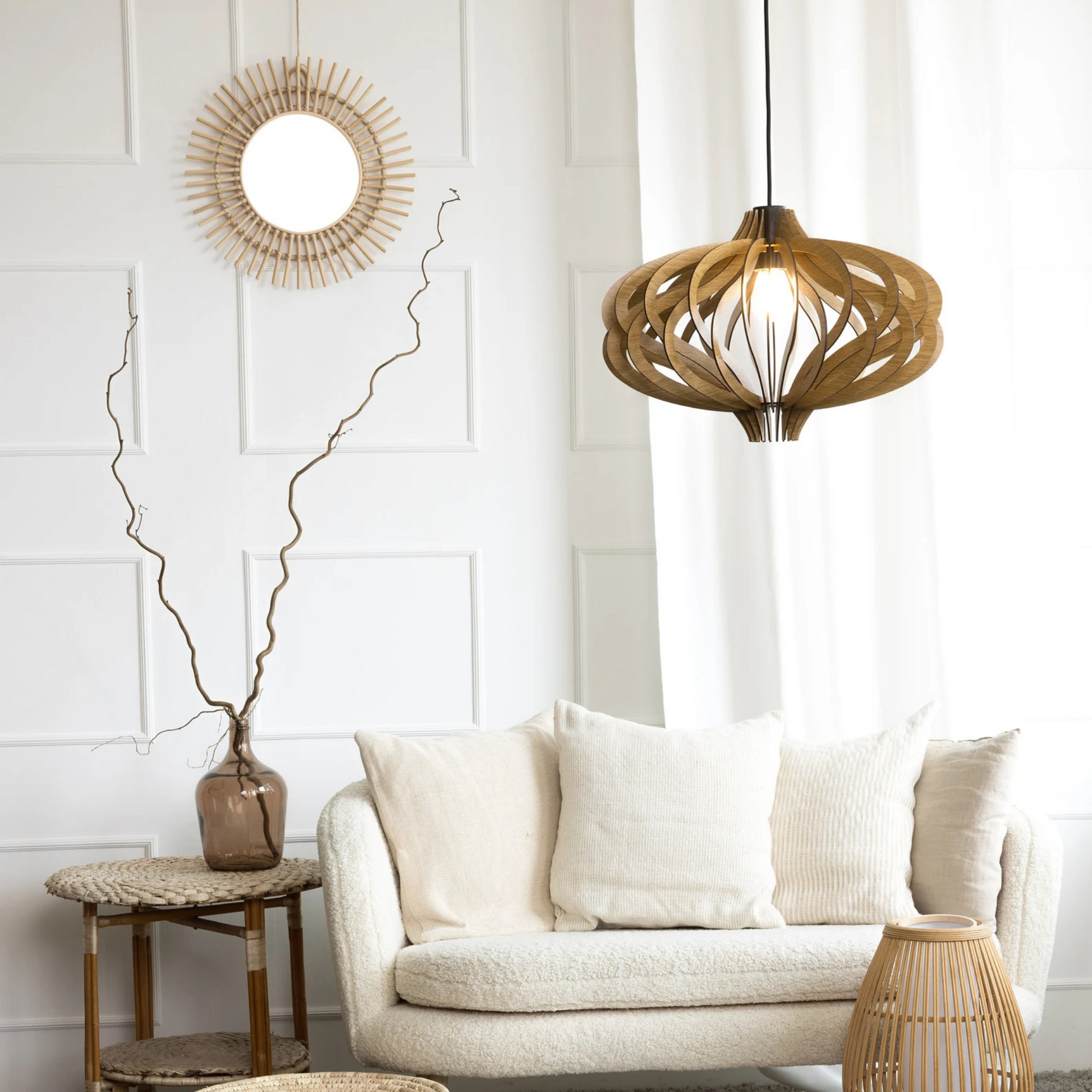 Suspension moderne en bois au design scandinave. Son abat-jour géométrique diffuse une lumière douce et chaleureuse, idéale pour la salle à manger, le salon ou la chambre. Allie élégance naturelle et style contemporain.